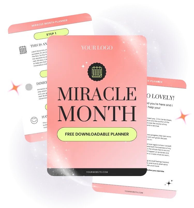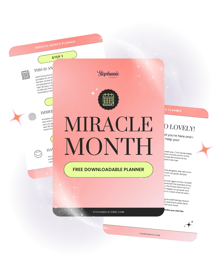 I know how easy it is to lose momentum or feel like you’re going in circles. That’s why I’m sharing the Miracle Month Planner with you — a simple, guided system to reset, refocus, and stay consistent.